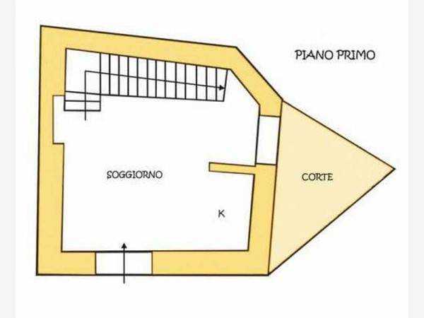 PRIMO PIANO: soggiorno con angolo cottura e piccola corte.